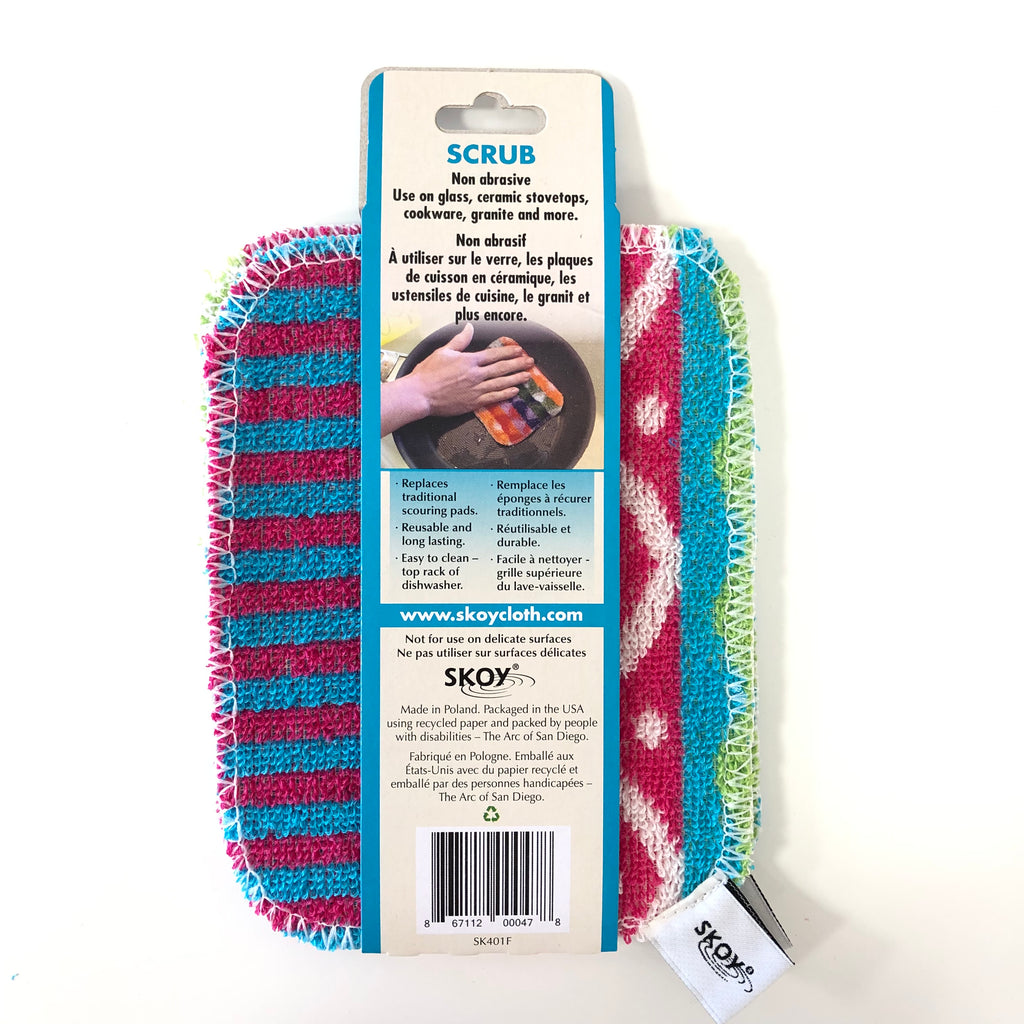 - FUN COLORS AND DESIGNS - Who said cleaning has to be boring? The Skoy Scrub comes in a variety of colors and designs, adding a dash of fun to your cleaning routine. Replace your steel wool, brillo pads, brushes, and sponges with our kitchen scrubbers.